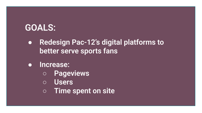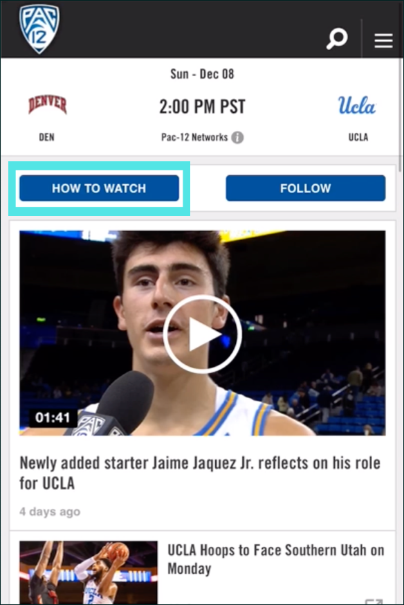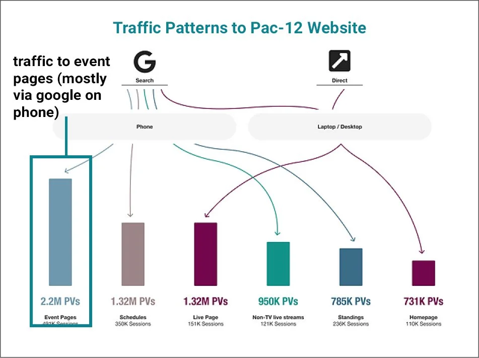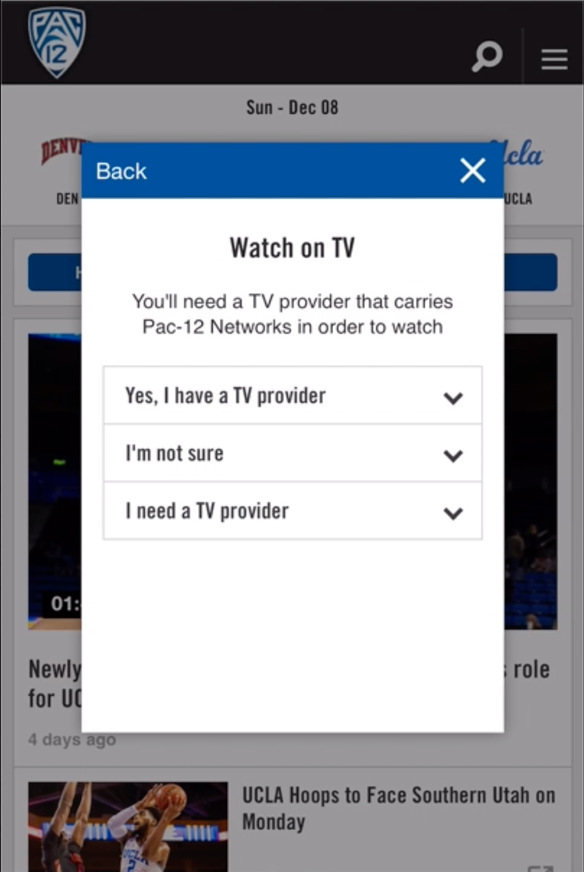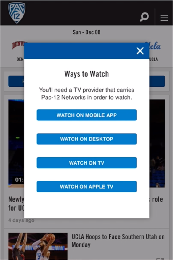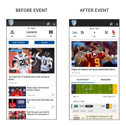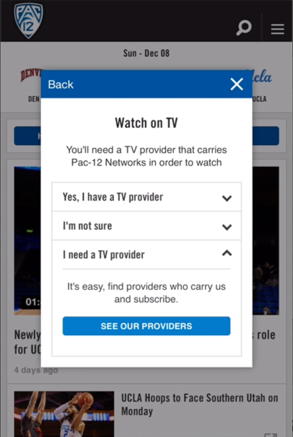 Pac-12 Networks was one of the first sports tv networks to enable watching via streaming apps. As Senior Director of Research and Design, I revamped the website and apps to better engage fans, increase viewership, and drive revenue