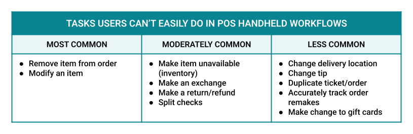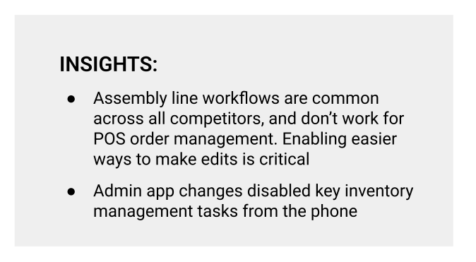 Square is a leading financial technology platform for businesses. I led a cycle of qualitative research, identified core weaknesses in how handheld point-of-sale devices enabled order management, and recommended solutions